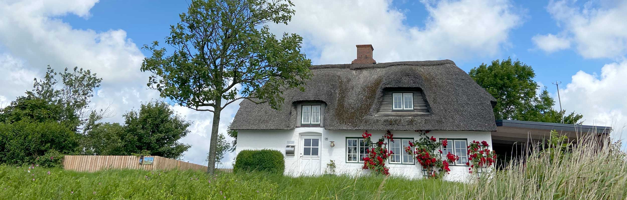 EIN REETDACHHAUS AUF EINER INSEL.